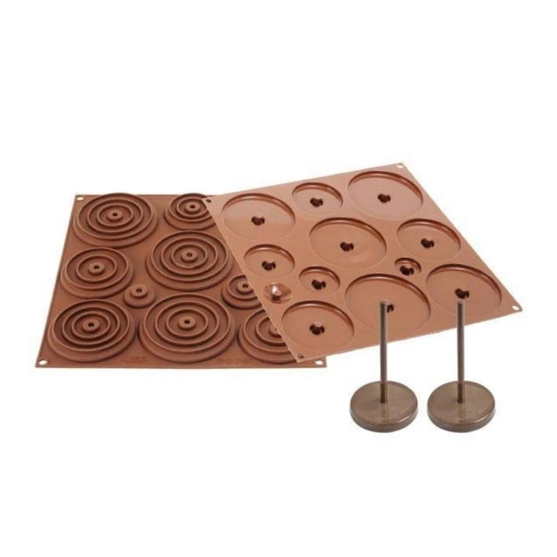 - uno stampo in silicone, 12 impronte, della misura di 31 x 35 cm, perfetto per realizzare dischi di cioccolato per comporre il tuo uovo 3D