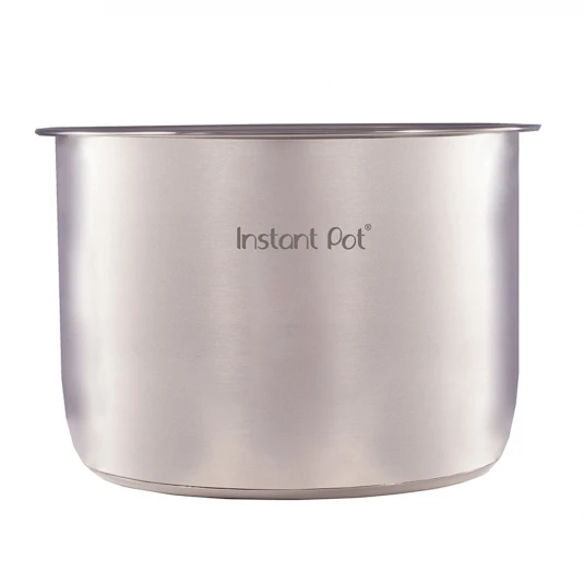 Pentola interna estraibile Instant Pot® in acciaio inox, senza alcun rivestimento chimico, con uno spesso fondo pressofuso a triplo strato, per cui il cibo non si attacca e il calore si distribuisce in modo uniforme, durante la cottura.