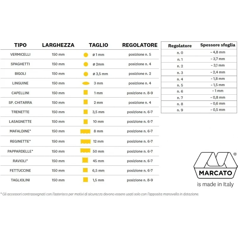 Gli accessori extra, applicabili alla macchina Atlas 150, arricchiscono l’esperienza culinaria, offrendo la possibilità di preparare ben 12 formati di pasta, grazie ai 12 diversi rulli da taglio: