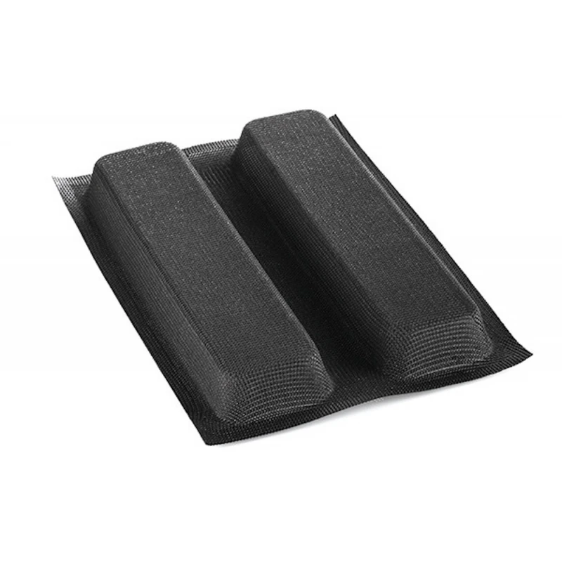 Stampo microforato, in silicone e fibra di vetro, ideale per la cottura in forno. Ogni cavità ha la misura di 27 x 7 cm H 3 cm, per un totale di 2 impronte a forma di plumcake per stampo.