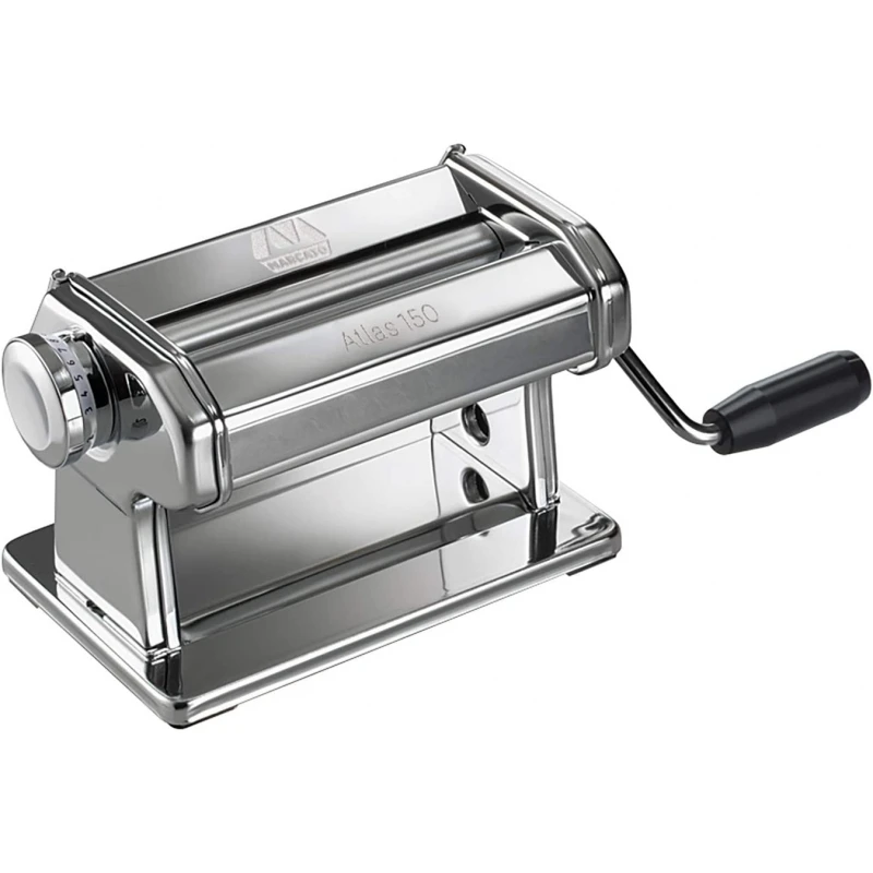 Atlas 150 Roller, della linea Marcato Classic, è la più piccola sfogliatrice, ideale per la cucina di casa. Con Atlas Roller 150 realizzi sfoglie con una larghezza massima di 150 mm. Permette di scegliere lo spessore della stessa grazie al regolatore con 10 posizioni: da 4,8 mm fino a 0,6 mm.