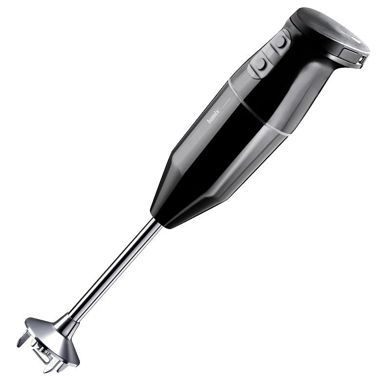 Il robot è dotato di tre velocità, raggiunge fino a 15.000 giri al minuto in modalità booster, attivabili grazie a due appositi tasti, morbidi alla pressione e rivestiti in gomma antiscivolo. Una peculiarità è l’impugnatura “invertita”, caratteristica dei modelli Bamix, che permette di azionare i tasti usando il pollice, mentre si tiene saldo il frullatore con le altre quattro dita.