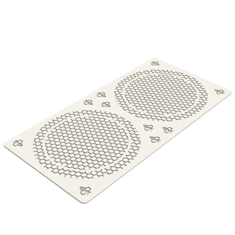 Questo tappetino rappresenta un alveare dettagliato con piccole api, trasformando ogni torta in un’opera d’arte. Ideale per torte con diametri da 14 a 18 cm, lo stampo Bee offre due impronte per ogni utilizzo, permettendoti di creare decorazioni sorprendenti con facilità e precisione.