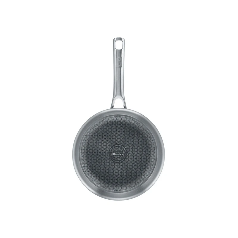 Padella della serie TRICION RESIST di Berndes, realizzata con una speciale struttura a tre strati sigillati insieme, di cui due in acciaio inossidabile di alta qualità e uno in alluminio, permette una conduzione del calore molto veloce, distribuendolo in maniera ottimale.