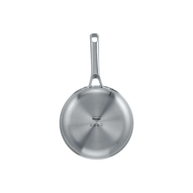 Padella della serie TRICION RESIST di Berndes, realizzata con una speciale struttura a tre strati sigillati insieme, di cui due in acciaio inossidabile di alta qualità e uno in alluminio, permette una conduzione del calore molto veloce, distribuendolo in maniera ottimale.