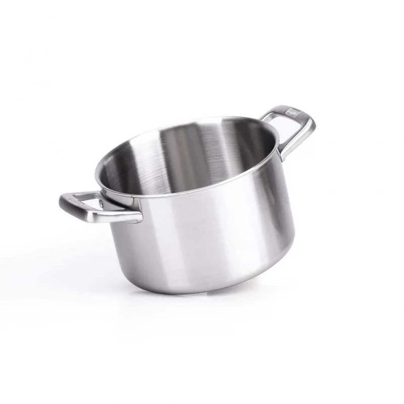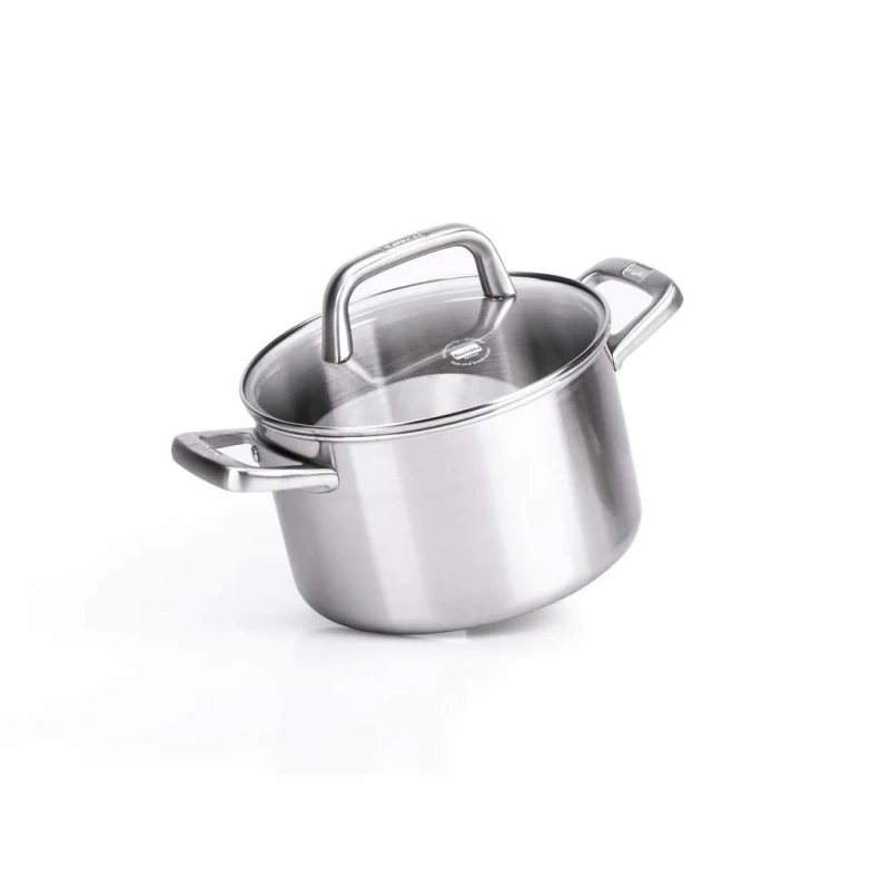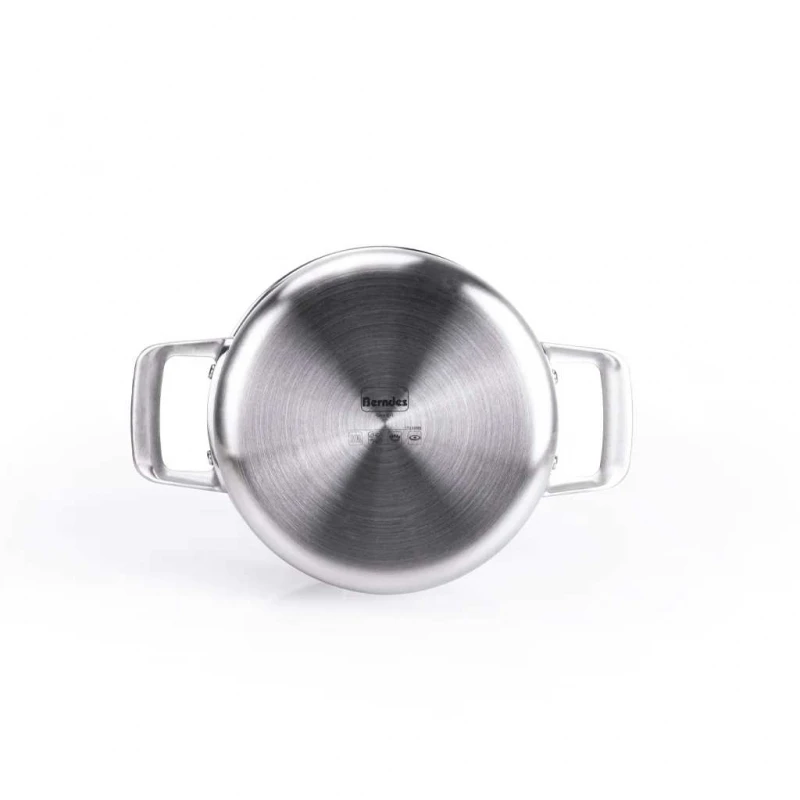 Pentola casseruola di 22 cm della serie TRICION RESIST di Berndes, realizzato con una speciale struttura a tre strati sigillati insieme, di cui due in acciaio inossidabile di alta qualità e uno in alluminio, permette una conduzione del calore molto veloce, distribuendolo in maniera ottimale.