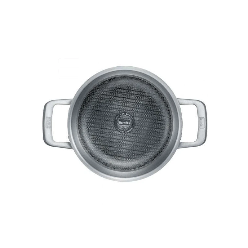 Tegame della serie TRICION RESIST di Berndes, realizzata con una speciale struttura a tre strati sigillati insieme, di cui due in acciaio inossidabile di alta qualità e uno in alluminio, permette una conduzione del calore molto veloce, distribuendolo in maniera ottimale.