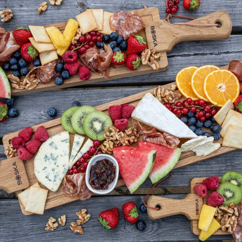 Con il suo design intelligente e rettangolare, lungo oltre 40 cm (manico escluso), questo tagliere è perfetto per presentare fette di pane, pezzetti di formaggio, salumi, ciotoline di salse, tapas e altri antipasti, in modo delizioso.