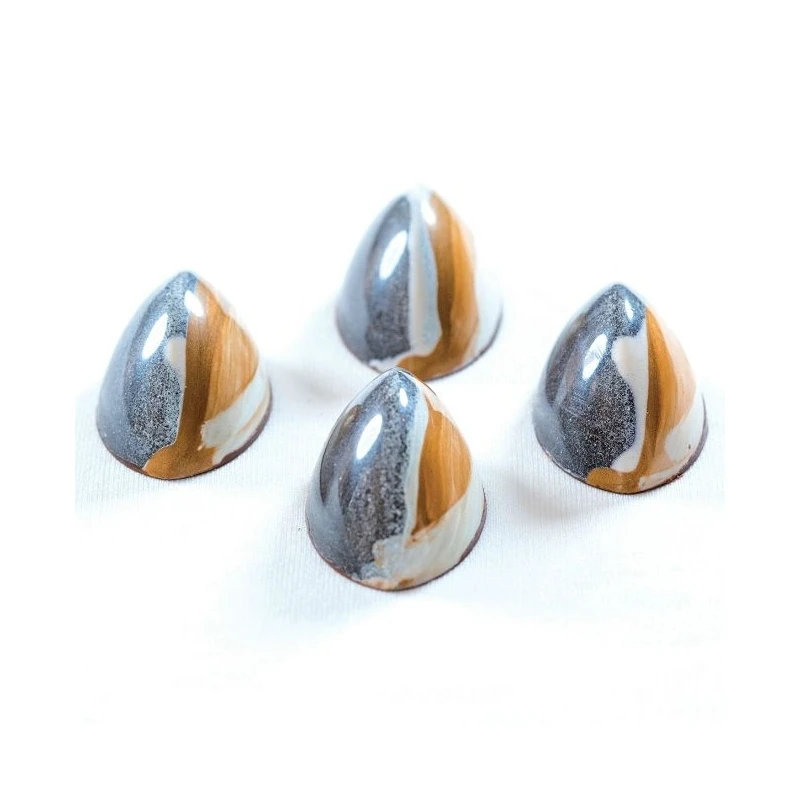 Questo stampo è realizzato in tecnopolimeri altamente qualitativi e resistenti che garantiscono, grazie alla superficie a specchio, la riuscita di cioccolatini perfetti anche nei minimi dettagli.