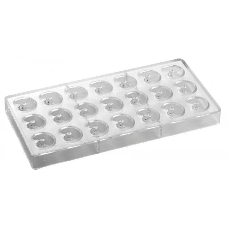 Questo stampo è realizzato in tecnopolimeri altamente qualitativi e resistenti che garantiscono, grazie alla superficie a specchio, la riuscita di cioccolatini perfetti anche nei minimi dettagli.