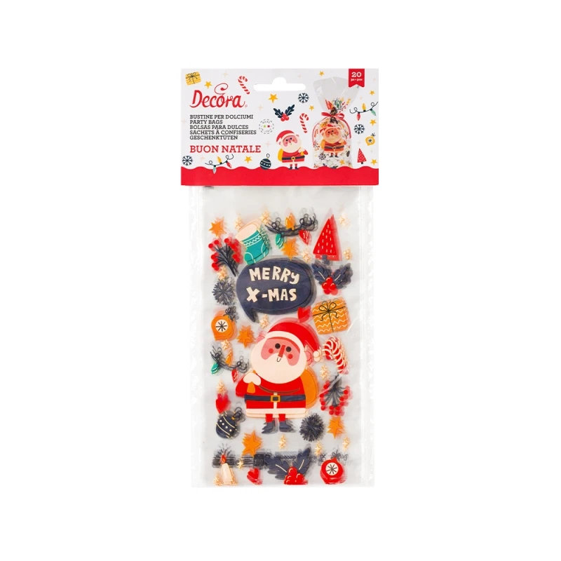 Benvenuti nell’universo di praticità e stile con i Sacchetti in Plastica Trasparente con simpatici disegni a tema natalizio. Questi sacchetti, dotati di fondo a soffietto, sono l’accessorio perfetto per confezionare con amore biscotti, cake pops e caramelle.