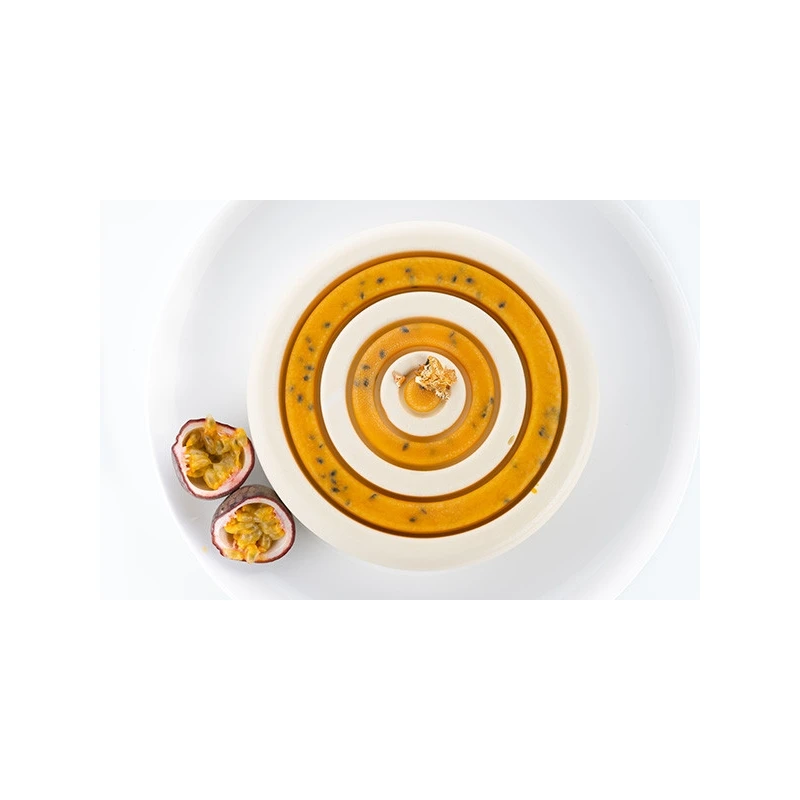 Lo stampo è dotato di una speciale bordatura interna che conferisce una leggera rotondità alla base delle preparazioni. Garantisce risultati impeccabili non solo in versione semifreddo e mousse, ma anche in versione cotta.