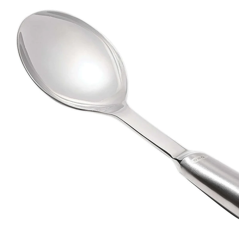 Il cucchiaio da portata, parte della linea Steel di Oxo, ha un design elegante ed è ottimo per mescolare e servire in fase di preparazione e anche direttamente in tavola.