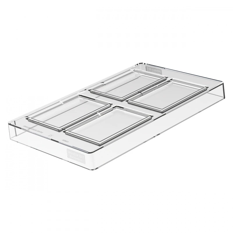 Degusta02 T è lo stampo in Tritan pensato per realizzare sottili tavolette di cioccolato, perfetto per presentare il cacao nelle sue diverse complessità aromatiche.