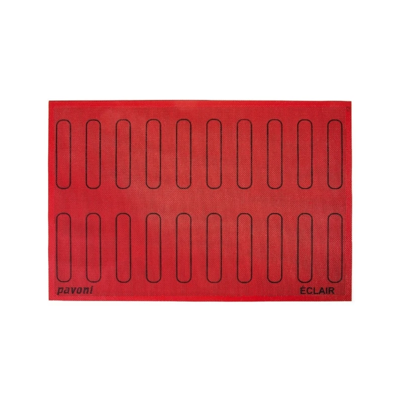 Tappetino in silicone microforato antiaderente delle dimensioni di 58,5 x 38,5 cm, adatto per teglie 60×40 cm, ideale per realizzare 20 éclair.
