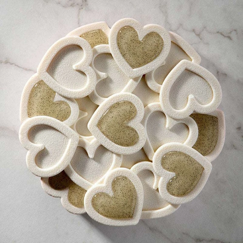 Ciascun cuore è impreziosito da una piccola cavità centrale, ideale per aggiungere decorazioni creative o golose rifiniture al tuo dolce.