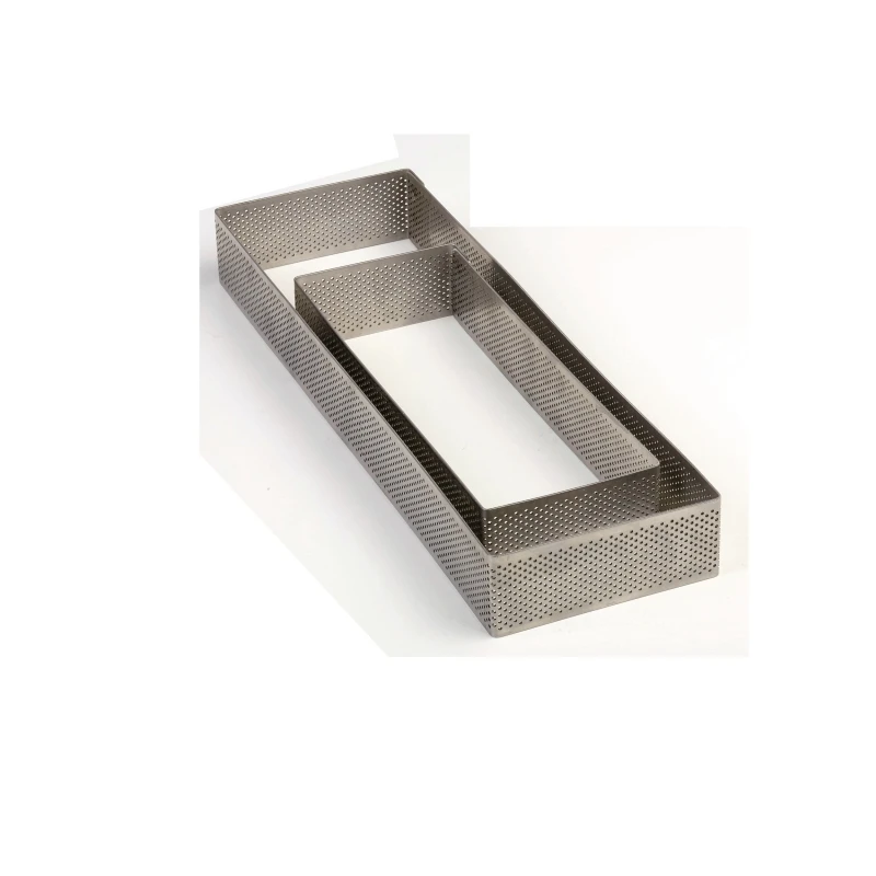 Fascia microforata in acciaio inox, di forma rettangolare, parte della linea “PROGETTO CROSTATE”, nata dalla collaborazione di Pavoni con il Pastry Chef Gianluca Fusto.
