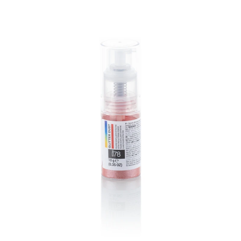 Colorante alimentare perlescente in polvere con pompetta ad aria, ideale per decorazioni.