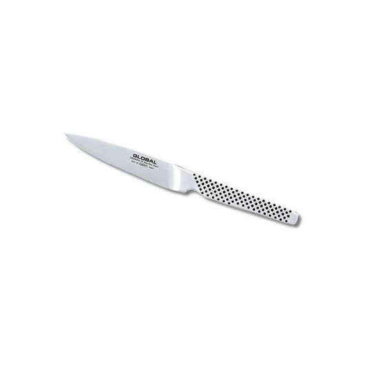 Lo spelucchino Global GSF-22, con lama dritta e tagliente da 11 cm, è ideale per pelare, tagliare e affettare frutta o verdura. Indispensabile per effettuare piccoli lavori quotidiani di taglio e pulizia, nei quali l’alimento viene tenuto in una mano e tagliato con l’altra, durante la preparazione dei cibi.