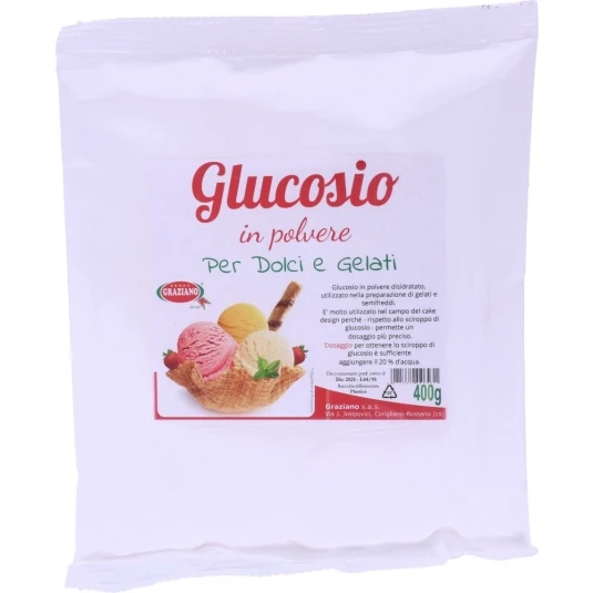Glucosio in polvere derivante dallo sciroppo di glucosio disidratato. Il glucosio ha un potere dolcificante inferiore a quello dello zucchero.