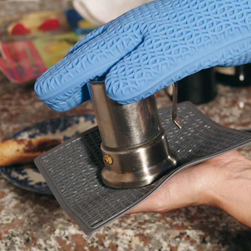 Guanto in silicone puro, ideale per protegge le mani dal contatto con pentole, teglie, alimenti e liquidi caldi.