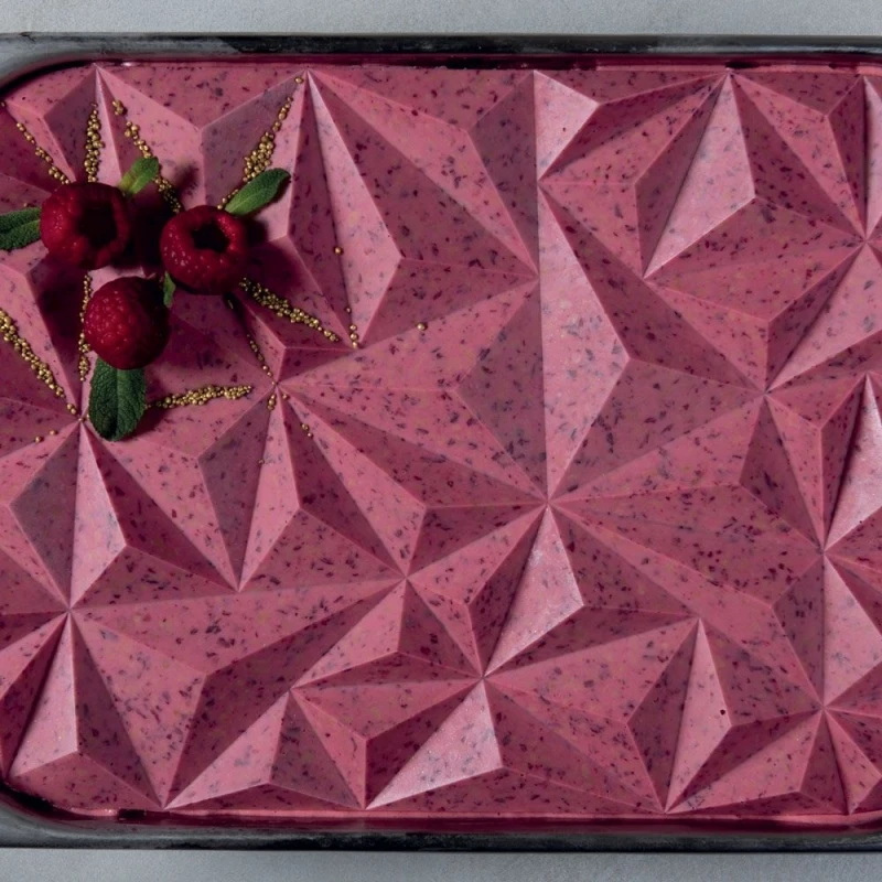 Come utilizzare questo stampo? Con un qualsiasi prodotto spatolabile, come una crema alla nocciola o al pistacchio, con una gelèe di frutta oppure direttamente con il gelato. Abbattere il prodotto per consentire un perfetto smodellamento dallo stampo. È possibile decorare il top a piacimento con un delicato effetto velluto, una glassatura o lasciare naturale.