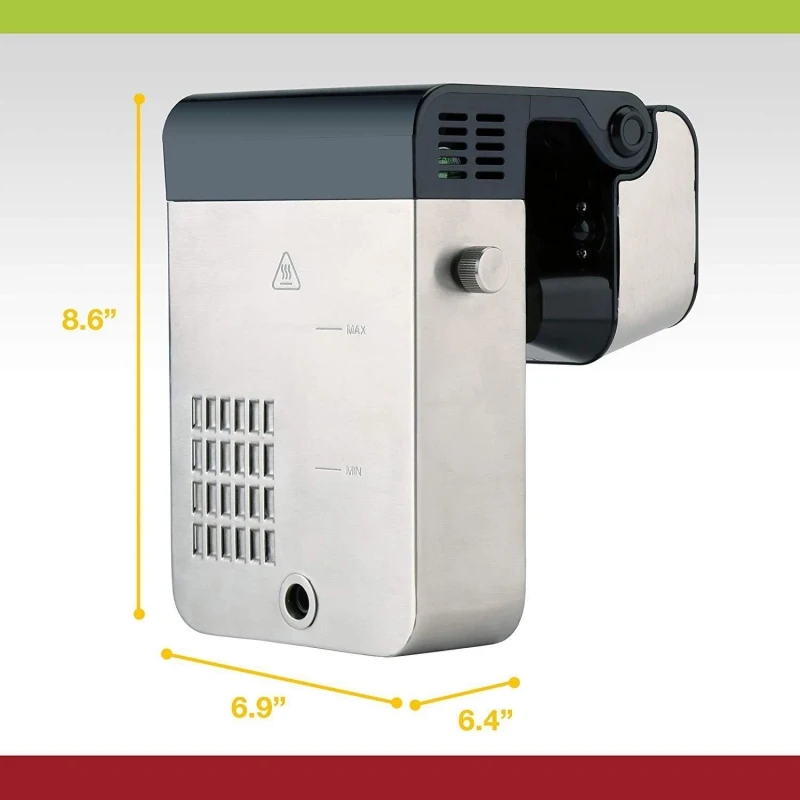 Questo roner sous vide di facile utilizzo, combinato con una potente pompa e resistenza da 1200 watt, consente di riscaldare in modo efficiente fino a 50 litri d’acqua per cucinare grandi quantità di cibo con un controllo della temperatura accurato, preciso e stabile, il che significa che non ci si deve mai preoccupare di monitorare il processo di cottura.