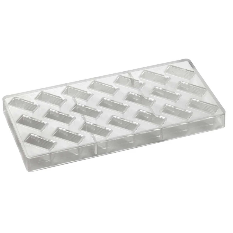 La superficie liscia degli stampi in policarbonato garantisce un rilascio agevole del cioccolatino finito, evitando che si spezzi o si attacchi al materiale. Questo ti permette di ottenere cioccolatini perfettamente definiti e lucidi che sembreranno piccole opere d’arte commestibili.