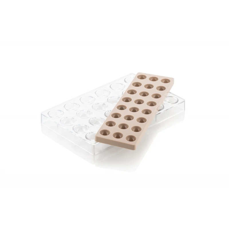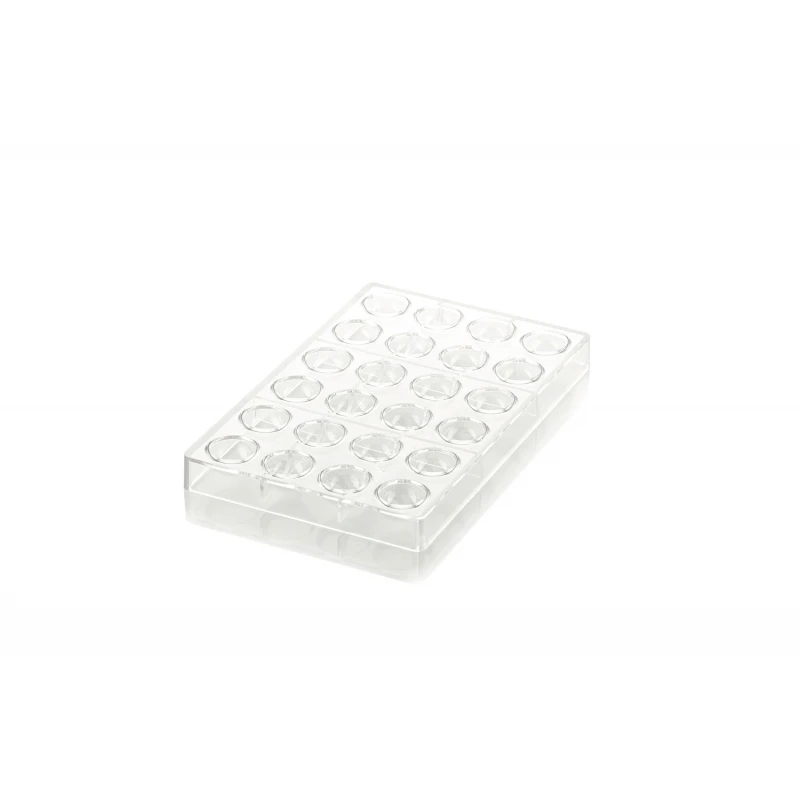 - uno stampo in tritan con 24 impronte, per dare la forma ai cioccolatini, ciascuno delle dimensioni di Ø 3,1 cm H 1,6 cm;