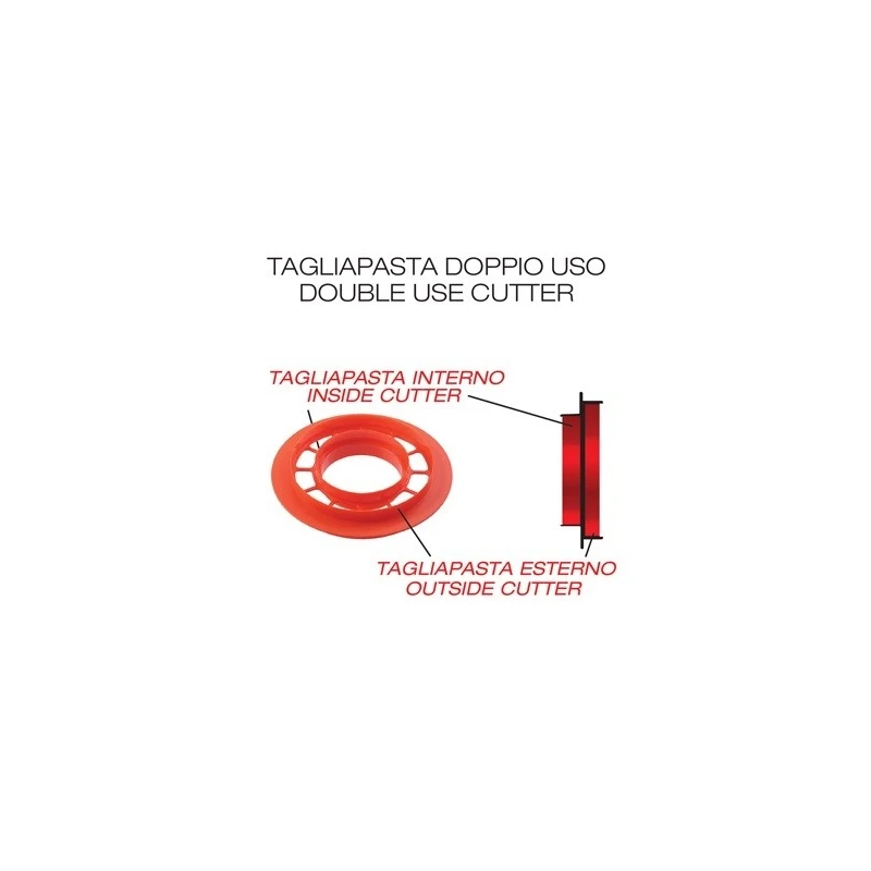 - un funzionale tagliapasta in plastica per la creazione di originali inserti e allo stesso tempo di basi d’appoggio in pan di spagna o croccante.