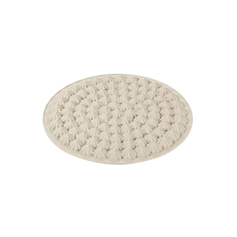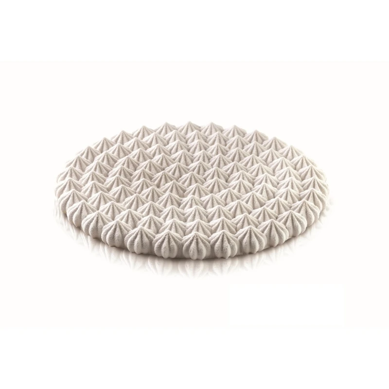 - uno stampo in silicone, di forma rotonda, delle misure di Ø 23 cm H 1,8 cm, perfetto per realizzare una mousse o una crema con un unico e straordinario motivo da stendere sulla pasta frolla.