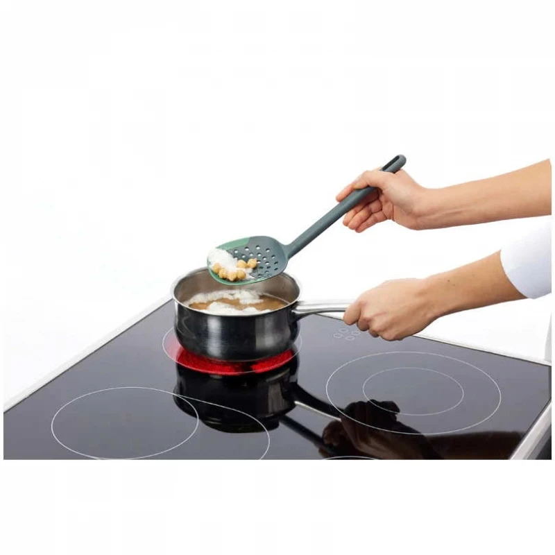 La schiumarola, con manico rinforzato, è indispensabile per la cucina quotidiana. Grazie alla scelta dei materiali, questo utensile in polibutilene tereftalato (PBT) con punta in morbido silicone platinico, è ideale per l’uso in pentole e padelle rivestite. L’impugnatura ergonomica garantisce maneggevolezza e una presa sicura.