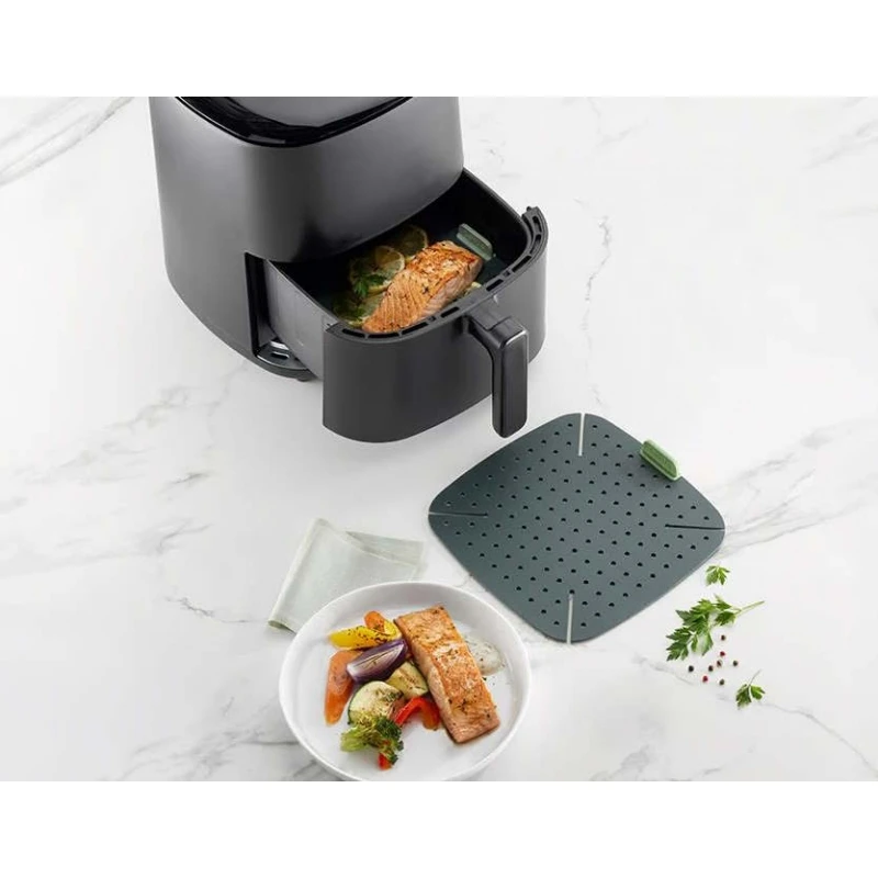 È l’accessorio indispensabile per chi ama cucinare in modo smart nella friggitrice ad aria: ideale per preparazioni asciutte come pizza, salmone, verdure o crostini. Dopo l’uso? Si estrae facilmente grazie alla linguetta antiscivolo e si lava in lavastoviglie.