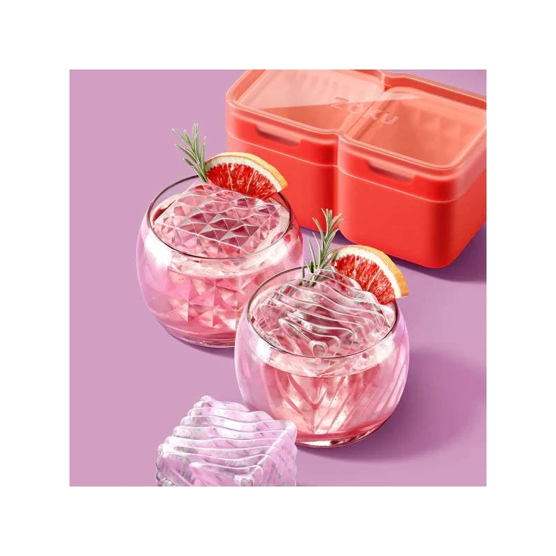 Ogni stampo produce cubetti di ghiaccio di dimensioni over size, che si distinguono per la loro bellezza e impatto visivo. Il motivo a cristallo sfaccettato inciso sui cubetti di ghiaccio conferisce un tocco di eleganza e originalità al tuo bicchiere, trasformando ogni bevanda in un’opera d’arte.