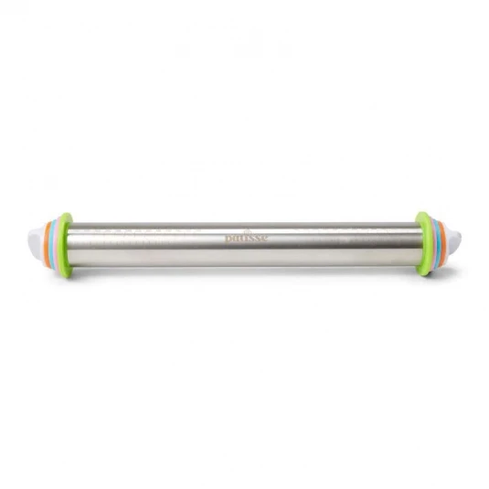 E’ un indispensabile utensile da cucina che, grazie ai suoi anelli intercambiabili, consente di stendere impasti tutti della stessa altezza, regolandone lo spessore, scegliendo tra 4 diverse misure: 10 mm, 6 mm, 3 mm e 2 mm. Ad ogni misura di spessore corrisponde un colore diverso.