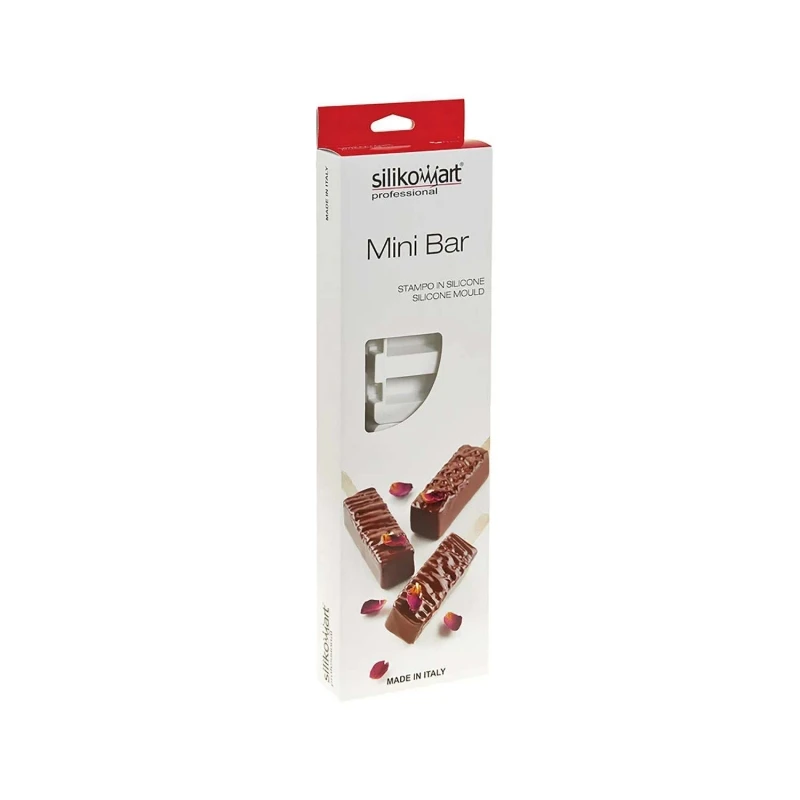 Il Kit MINI BAR Di Silikomart Professional rappresenta l’epitome della fusione tra forme geometriche ed eleganza. Questi stampi sono progettati per la creazione di monoporzioni raffinate dalle forme parallelepipedo. La loro versatilità li rende ideali per la preparazione di una vasta gamma di prelibatezze.