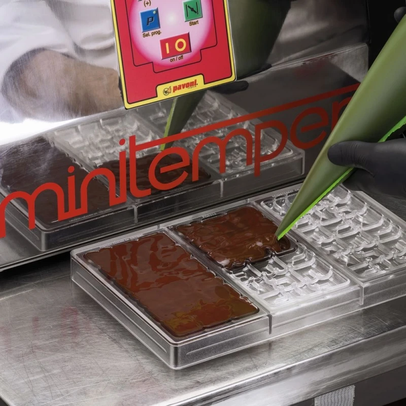 Minitemper è una vera temperatrice per cioccolato, anche se di piccole dimensioni. La sola differenza dalle temperatrici di maggiore capienza è data dall’impianto di raffreddamento ad aria fredda e non ad acqua fredda.