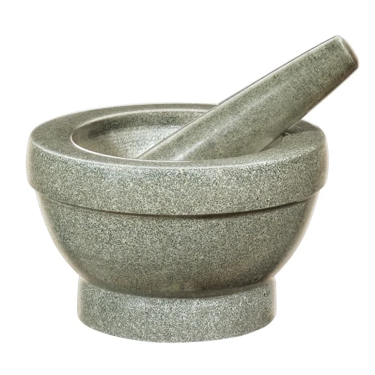 Mortaio in granito con pestello ideale per spezie essiccate, erbe e semi. Macina anche lo zucchero fino a ottenere lo zucchero a velo più fine.