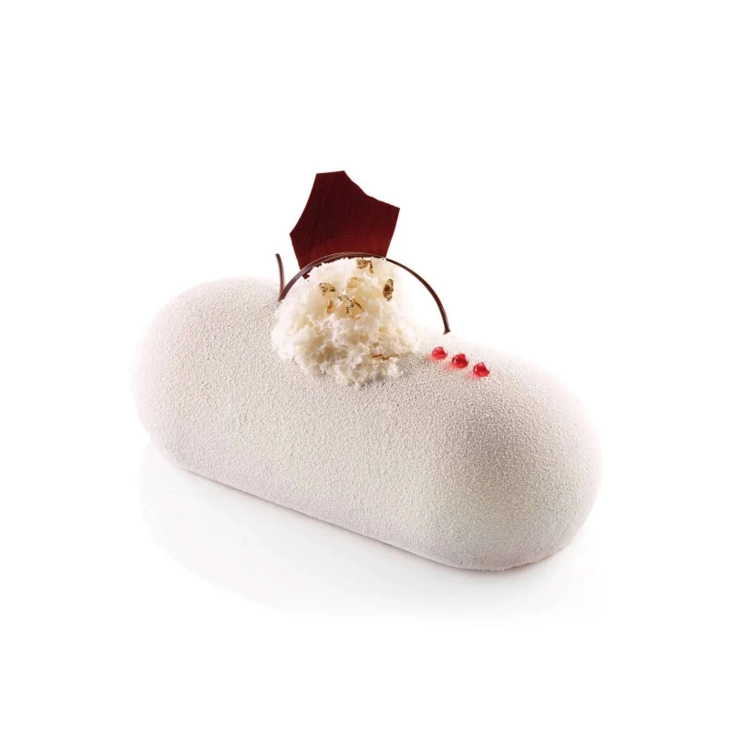 MR PILLOW è uno stampo pensato come rivisitazione moderna del classico tronchetto ed è particolarmente indicato per un gioco di inserti dall’effetto al taglio sorprendente, da realizzare con lo stampo JR PILLOW di Silikomart.