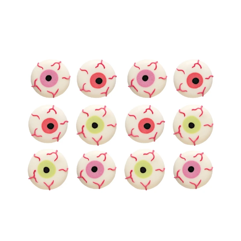Dai un po’ di personalità ai tuoi biscotti, cupcake e torte con questi occhietti spaventosi! Dona un tocco decorativo a brownies, cake pops, caramelle e persino ai gelati!