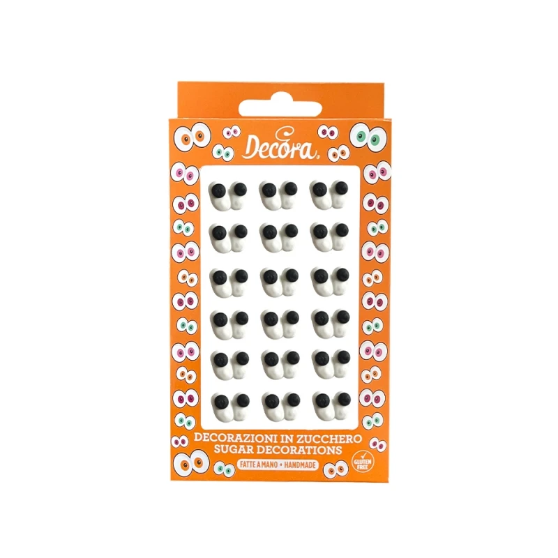 Dai un po’ di personalità ai tuoi biscotti, cupcake e torte con questi occhietti accoppiati bianchi e neri. Dona un tocco decorativo a brownies, cake pops, caramelle e persino ai gelati!