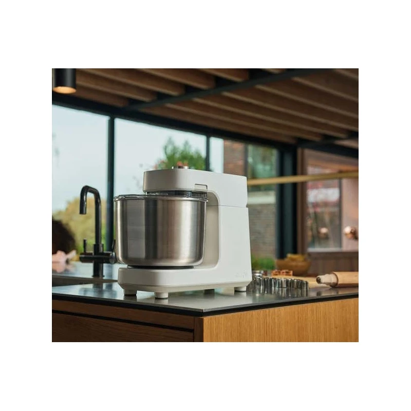 La macchina è completata da accessori intercambiabili: frusta ingranata, sbattitore flessibile e gancio impastatore, per ampliare le preparazioni anche a dolci, pasticceria e impasti leggeri.