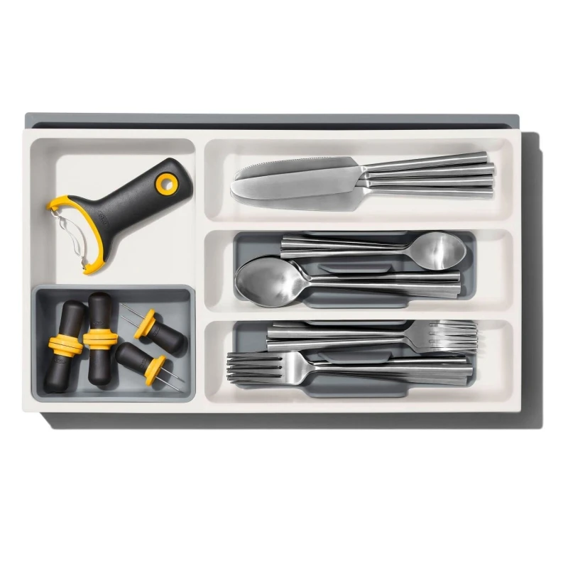 L’organizer da cassetto allungabile ha divisori regolabili per organizzare nel modo migliore i tuoi utensili.
