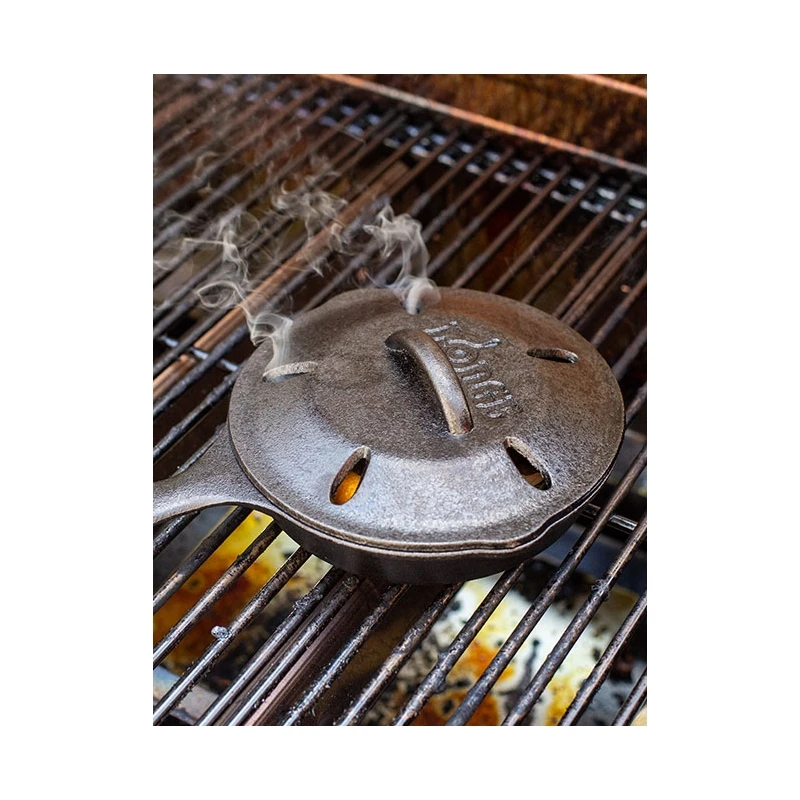 Padella per affumicare in ghisa con coperchio, si riscalda rapidamente in modo da poter ottenere facilmente il sapore dell’affumicatura sulla tua griglia all’aperto.