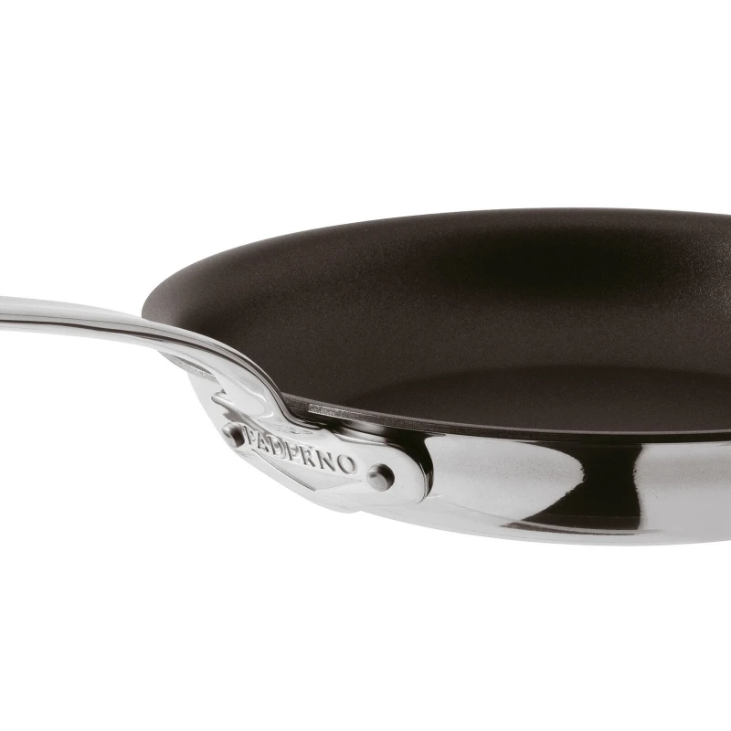 Gli strumenti di cottura della serie sono realizzati con una speciale struttura multilaminata a cinque strati – l’interno in acciaio inossidabile 18/10 con rivestimento antiaderente, l’anima in alluminio trilaminato e l’esterno in acciaio inossidabile per induzione con finitura a specchio – sigillati per formare un particolare materiale, che permette al calore di diffondersi, uniformemente e gradualmente, dal fondo al bordo della padella, durante la cottura.