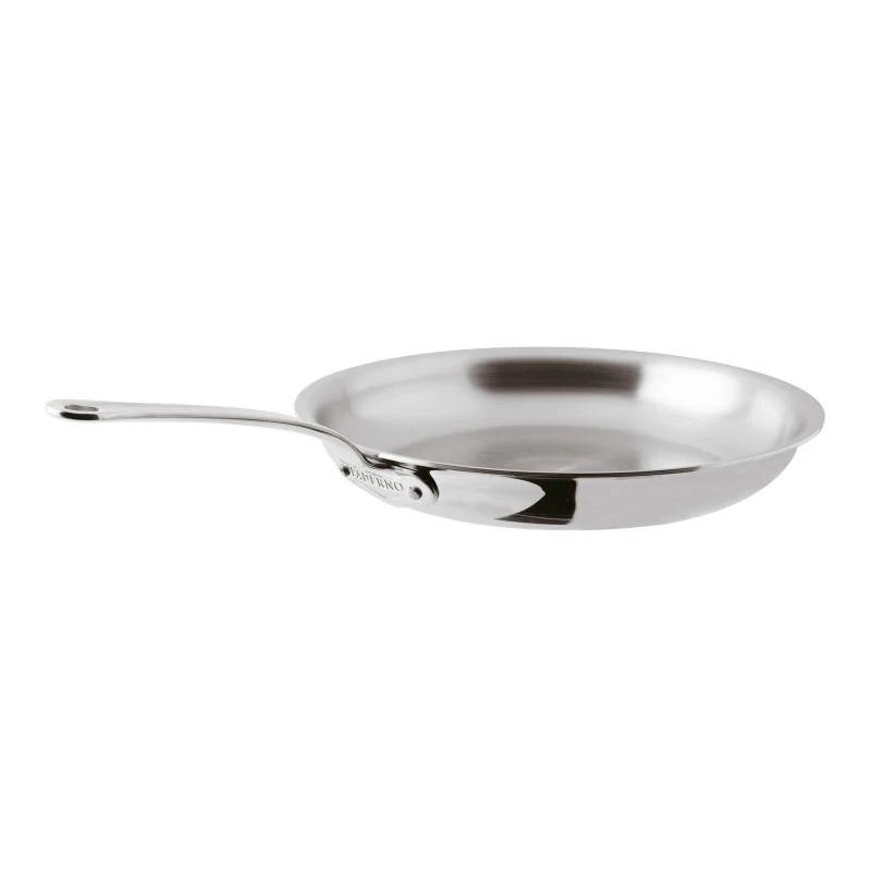 Gli strumenti di cottura della serie sono realizzati con una speciale struttura multilaminata a cinque strati – l’interno in acciaio inossidabile 18/10 satinato, l’anima in alluminio trilaminato e l’esterno in acciaio inossidabile per induzione con finitura a specchio – sigillati per formare un particolare materiale, che permette al calore di diffondersi, uniformemente e gradualmente, dal fondo al bordo della padella, durante la cottura.
