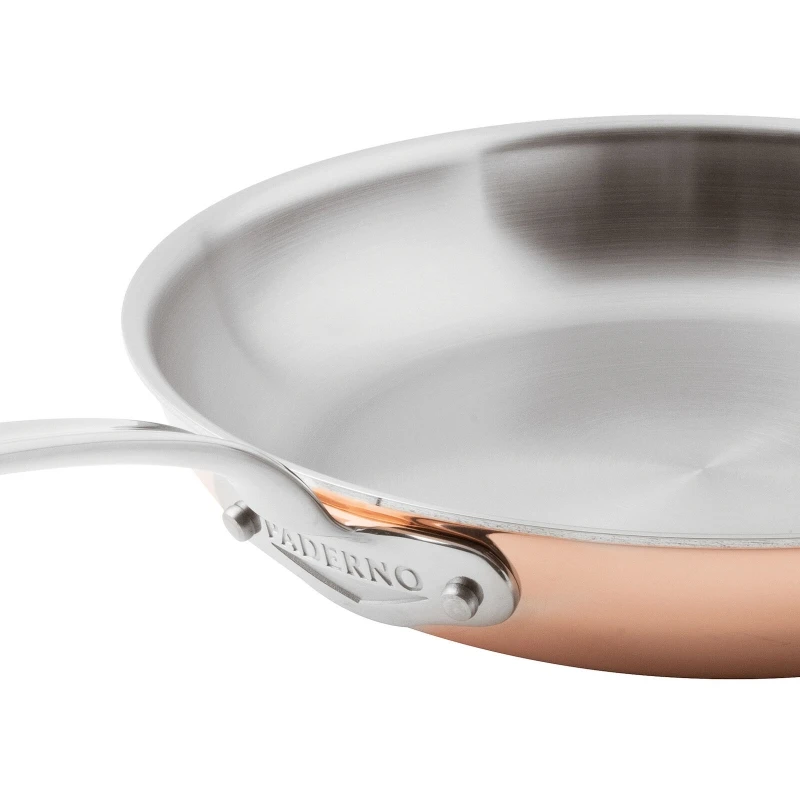 La lamina interna è in acciaio inossidabile, pratico e facile da pulire. L’anima in alluminio, leggero e ottimo conduttore di calore. L’esterno in rame finitura lucida, una tradizione in cucina, affascinante e bello da vedere.