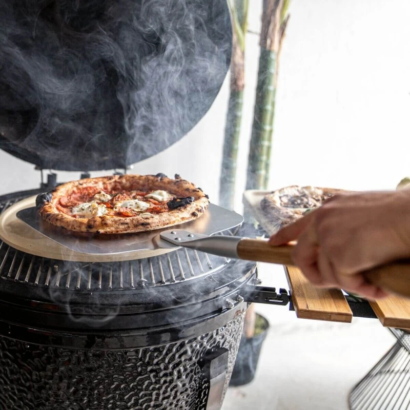 L’esclusivo manico lungo, con la forma di una pala da giardino, offre una presa stabile. Utile anche al momento di infornare pizze o pane non cotti.