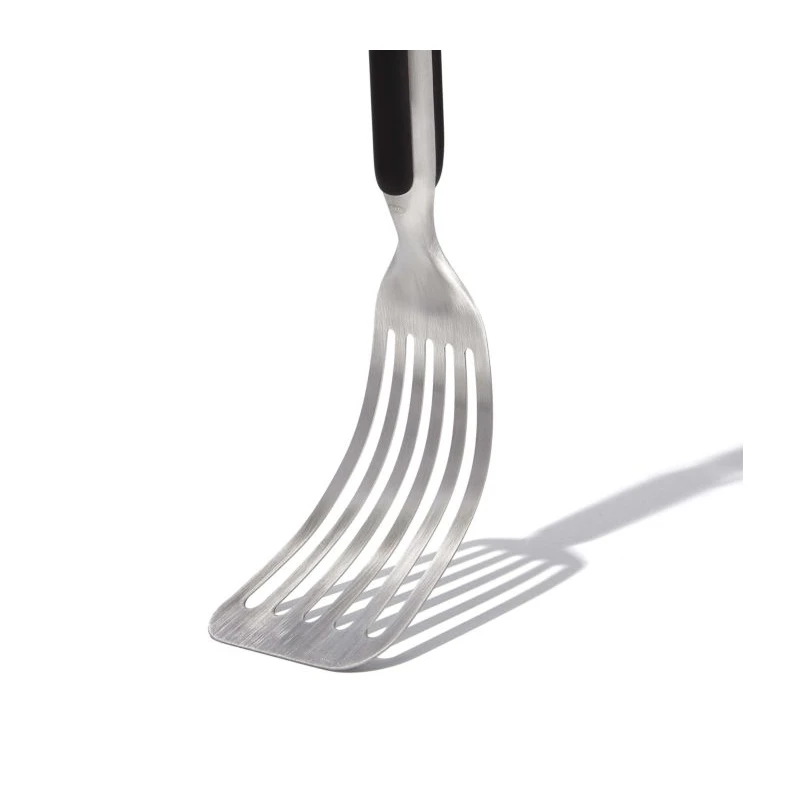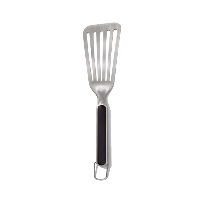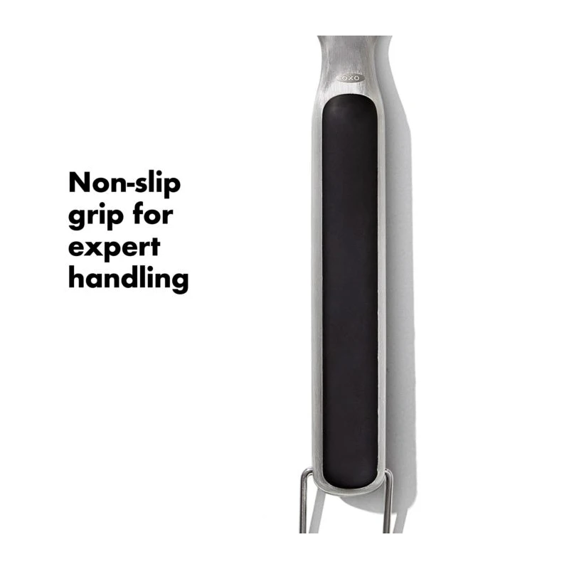 Paletta in acciaio inox spazzolato, ideale per girare la carne – come hamburger, pollo, bistecche – ma anche pesce e verdure sulla griglia.