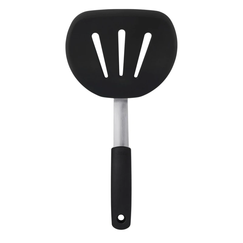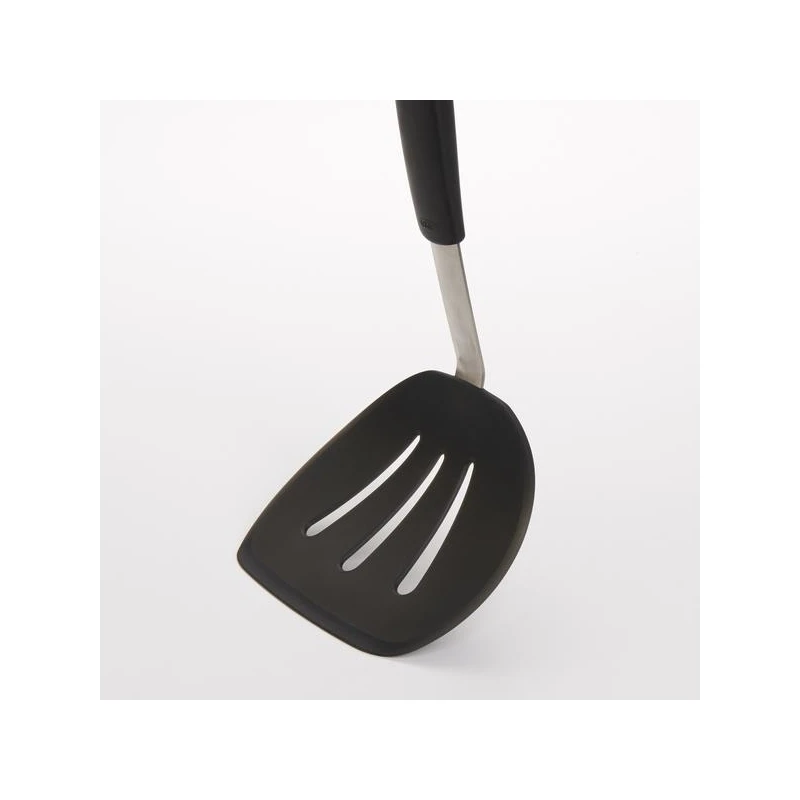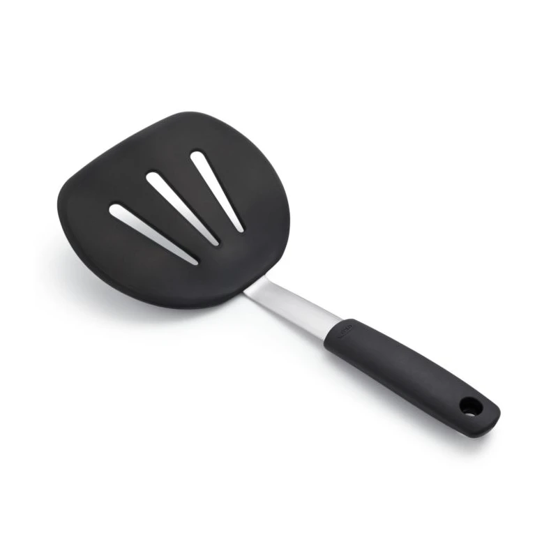 Il bordo sottile e flessibile è angolato per facilitare il capovolgimento o la rotazione di cibi morbidi o delicati. Adatta per pentole antiaderenti